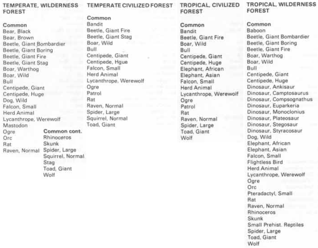 Encounter Tables