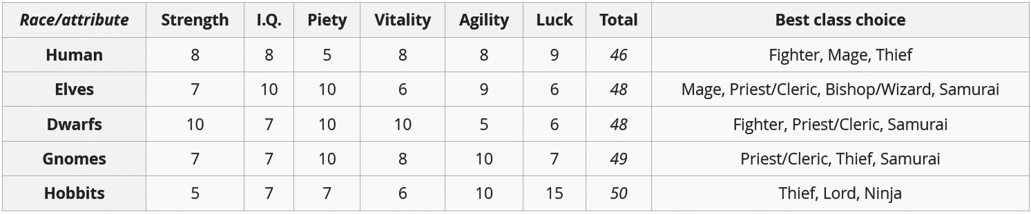 Updated 2DAs for 8 classes & 5 races. Added class-race matrix.